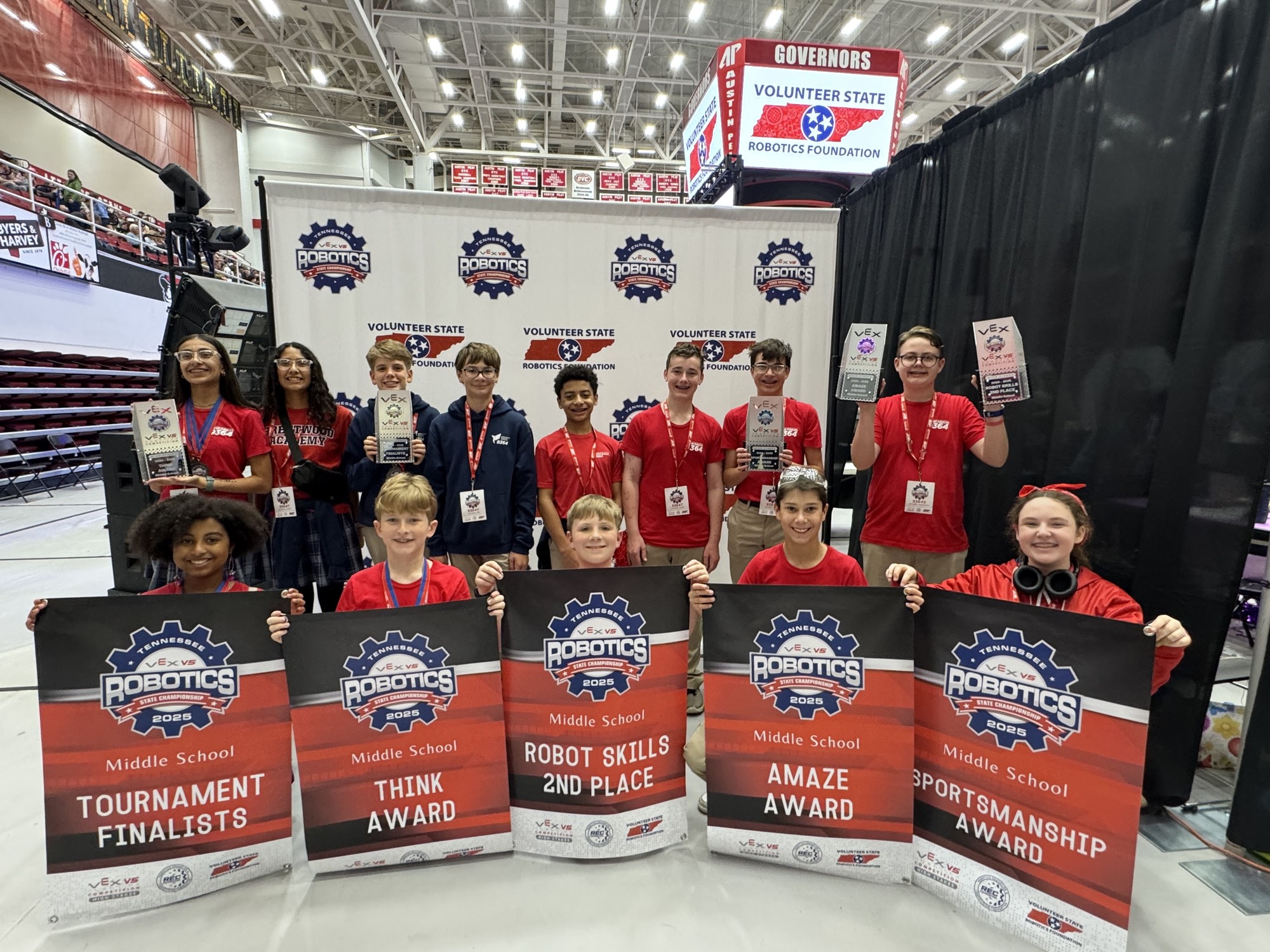 The Middle School Iron Eagles regular season runs from June - March, capped off by the Tennessee State Championship (March 13-14, 2026) and post-season culminates with the Middle School VEX World Championship (April, 2026 in St. Louis, MO).